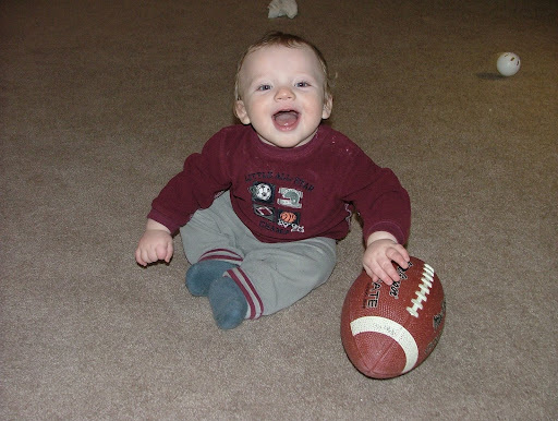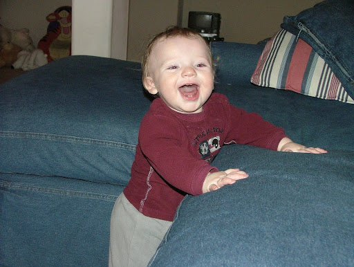 Taylor's a pretty cute, happy smiley guy, too! Funny, same smiley pose--these pictures are a few months apart.